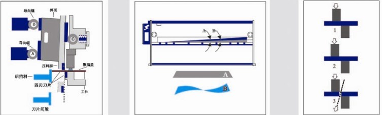 Triple support rolling guide raikl to eliminate gaps of support and enhnce shearing quality .